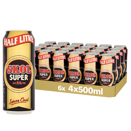Skol Super 8% Strong Lager Can 500ml - 24 Pack