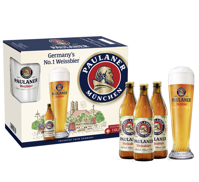 Paulaner Weissbier Gift Pack - 3x 500ml Bottle + 1 Glass
