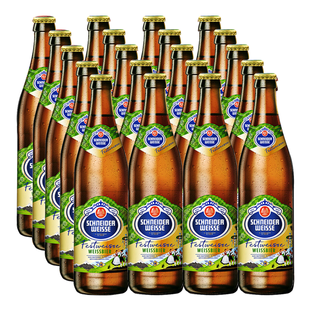 Ideal for celebrating: “Festweisse” – the bright, golden wheat beer, reissued according to the old festival beer recipe. It owes its fresh, bitter note to the valuable Cascade hops and the fruity Schneider yeast - a pleasure that couldn't be more refreshing and drinkable. Tastes great with fine greens, with light dishes, and – of course – in a festive setting.